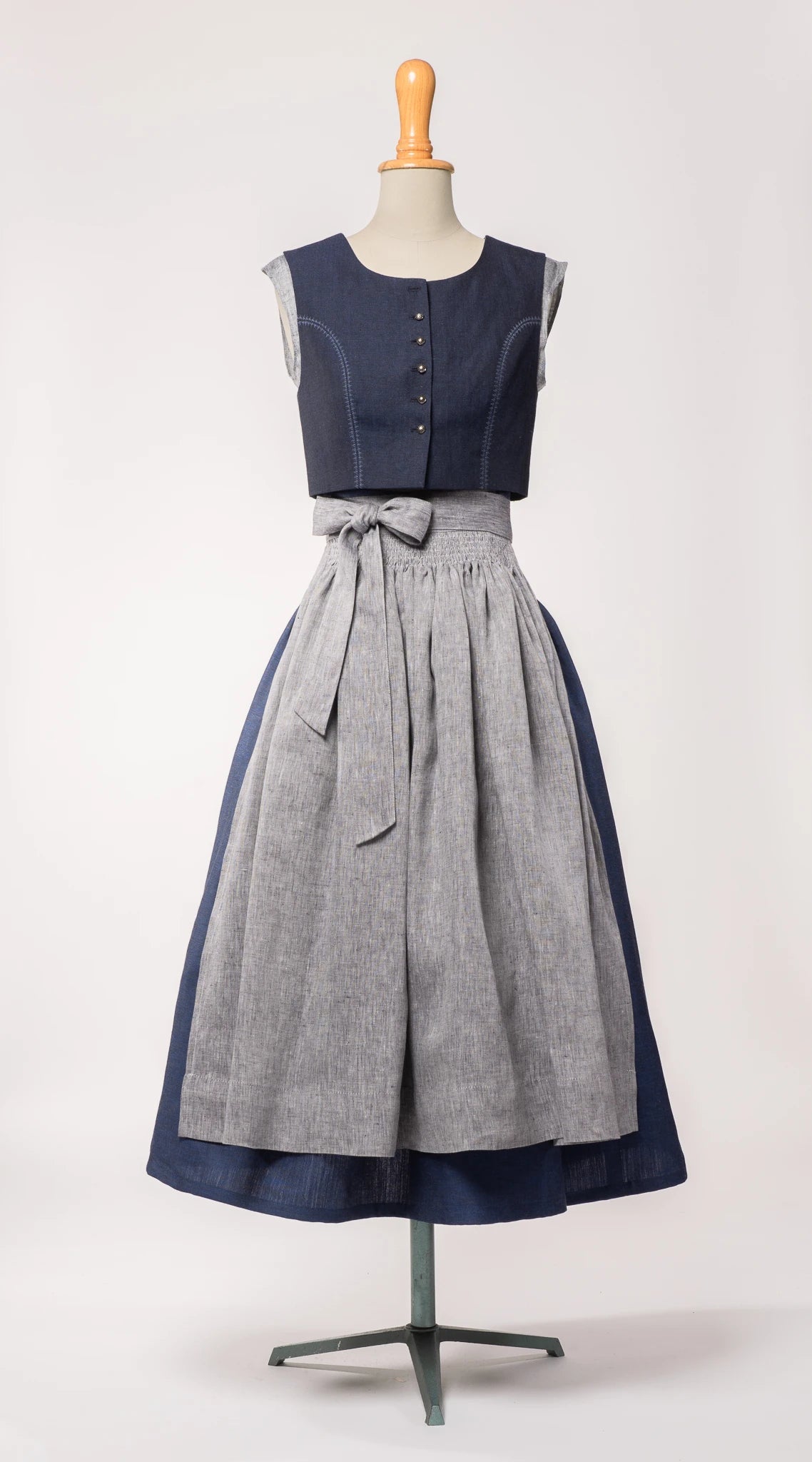 Dirndlschürze ROMY blaugrau | Bio-Leinen