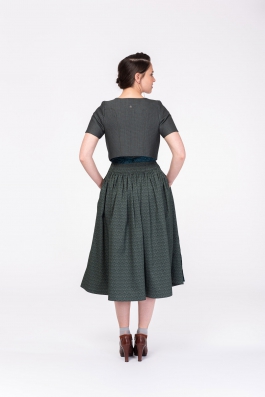ROCK | dunkelgrün gemustert // im Rückenteil von Hand gesmokt // 100% Baumwolle // bedruckt in Österreich | 299,-€ |
