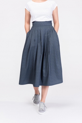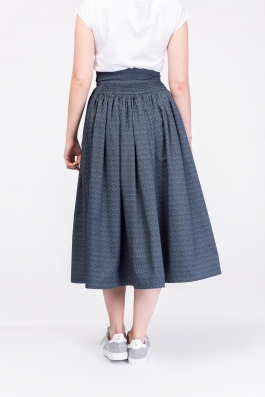 ROCK | dunkelblau gemustert // im Rückenteil von Hand gesmokt // 100% Baumwolle | 389,-€ |