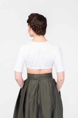 DIRNDLBLUSE | weiß // mit Perlmutt-Knopf und verdeckten Häkchen im Vorderteil zu schließen // 100% Leinen // aus kontrolliert biologischem Anbau // gewebt in Österreich | 199,-€ |