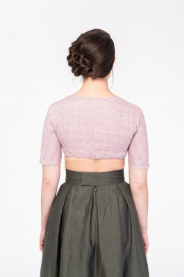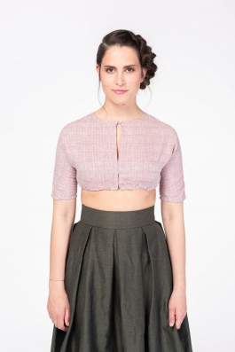 DIRNDLBLUSE | rosenholz mit feinem Webmuster // angeschnittene Ärmel // mit Perlmutt-Knopf und verdeckten Häkchen im Vorderteil zu schließen // 100% Leinen aus kontrolliert biologischem Anbau // gewebt in Österreich | 199,-€ |