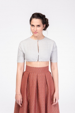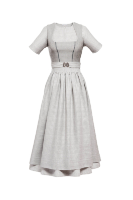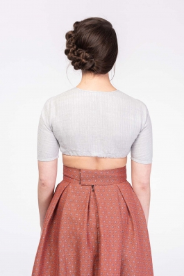 DIRNDLBLUSE | silbergrau mit feinem Webmuster // angeschnittene Ärmel // mit Perlmutt-Knopf und verdeckten Häkchen im Vorderteil zu schließen // 100% Leinen aus kontrolliert biologischem Anbau // gewebt in Österreich | 199,-€ |