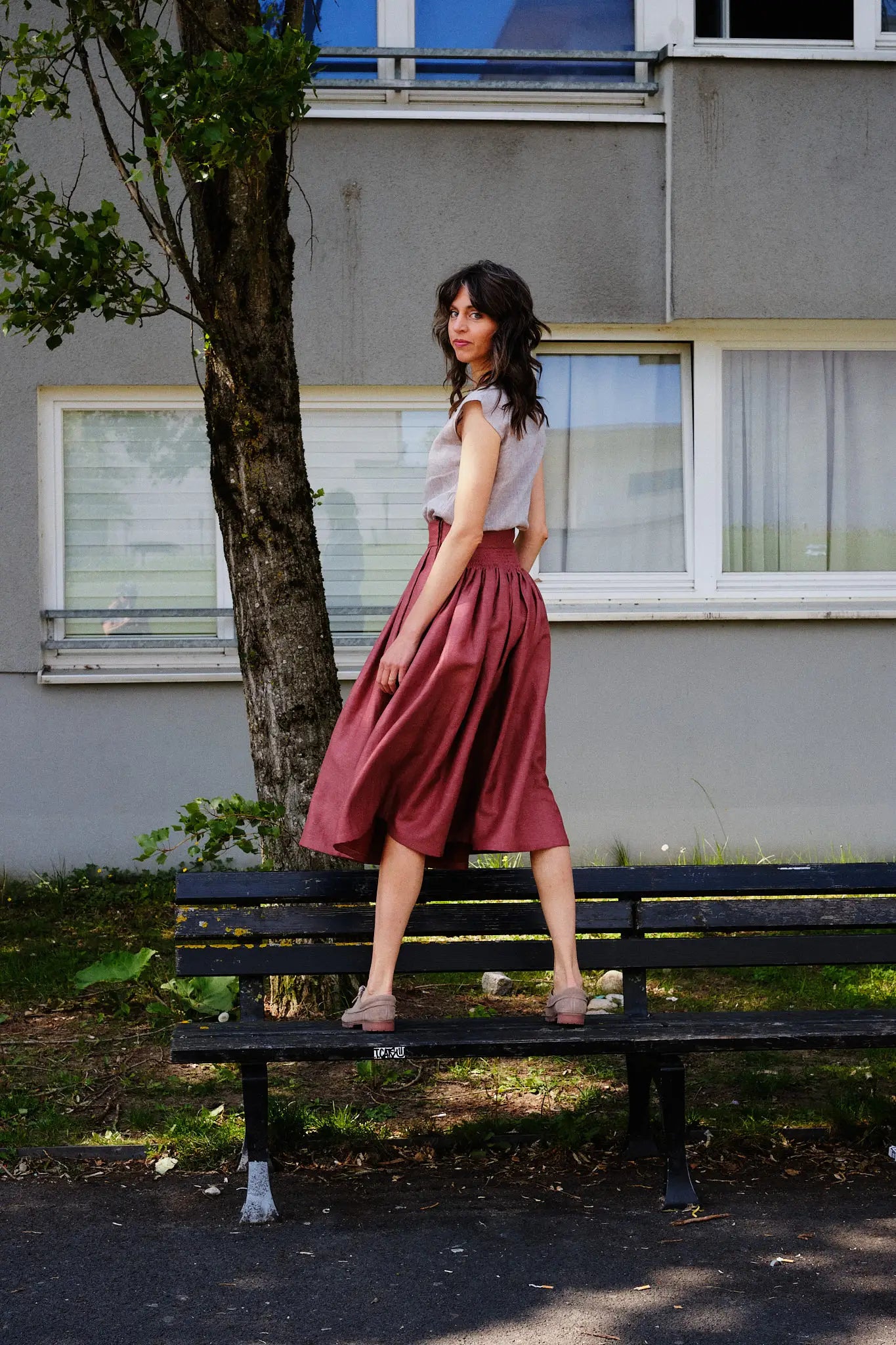 Bluse TILDA ist minimalistisch geschnitten und locker in der Passform. In unserem Atelier in München von Hand gefertigt, ergänzt sie unsere Röcke und Hosenröcke mit einer klaren Linie.