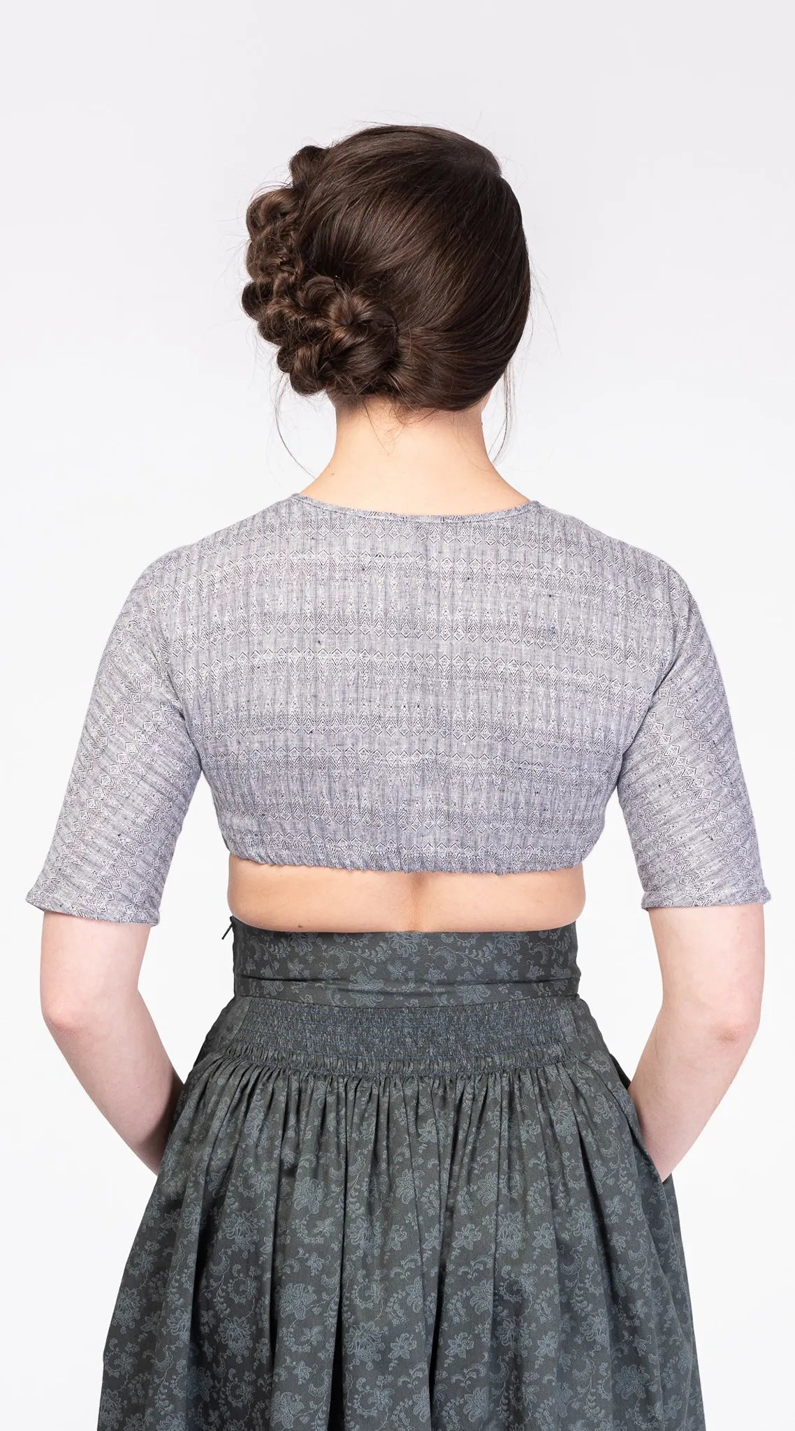 Dirndlbluse ROMY blaugrau mit Webmuster | Bio-Leinen