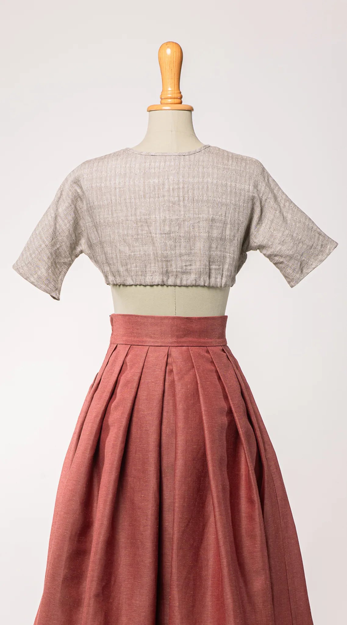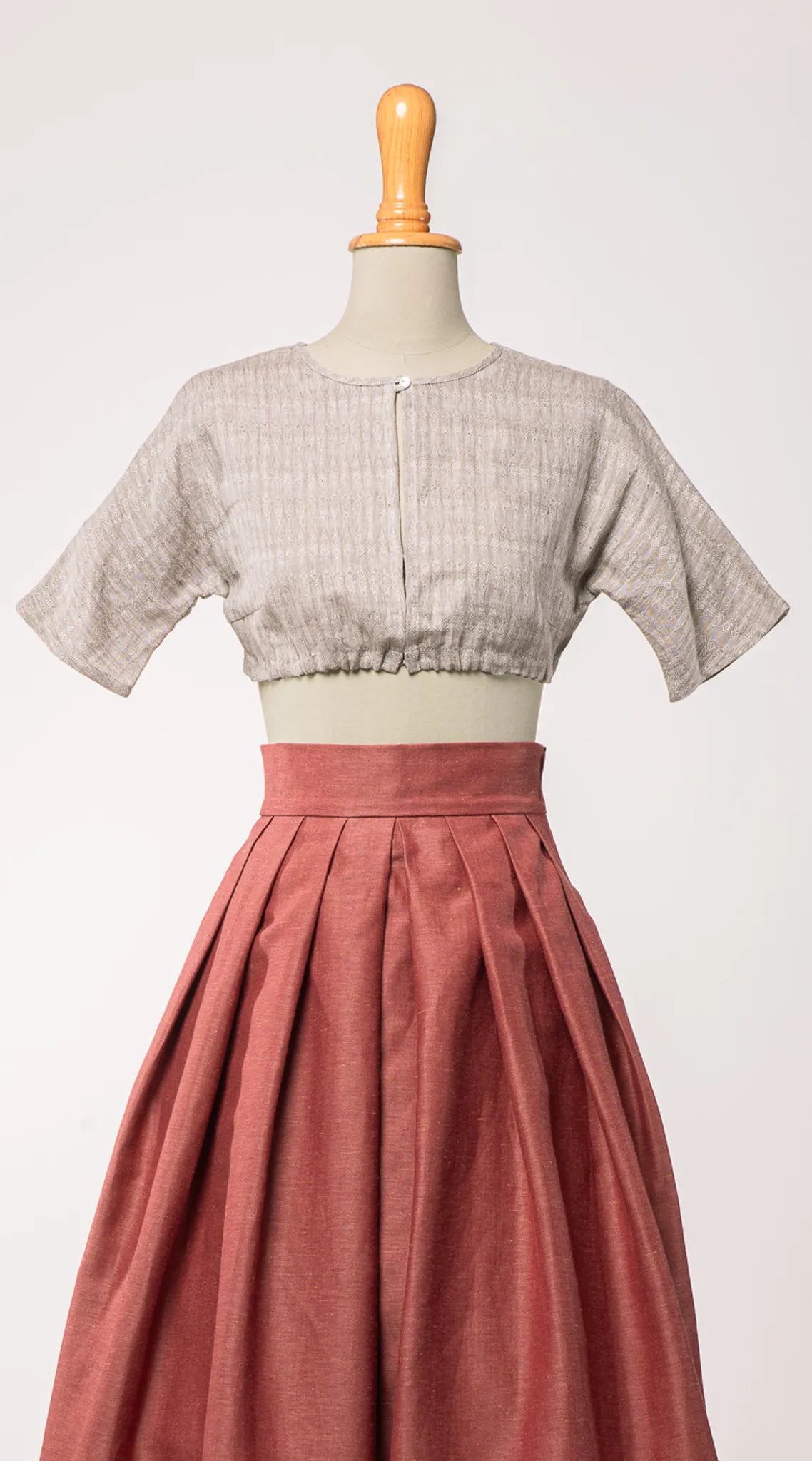 Dirndlbluse ROMY natur mit Webmuster | Bio-Leinen