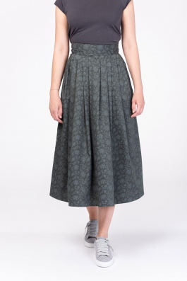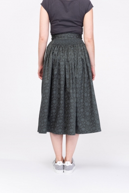 | graugrün gemustert // im Rückenteil von Hand gesmokt // zwei Eingrifftaschen // 100% Baumwolle | 359,-€ |