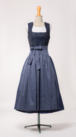 SCHÜRZE  | taubenblau mit Blumenmuster // gereiht mit aufwendigem Zierstich // 100% Baumwolle  | 159,-€  |